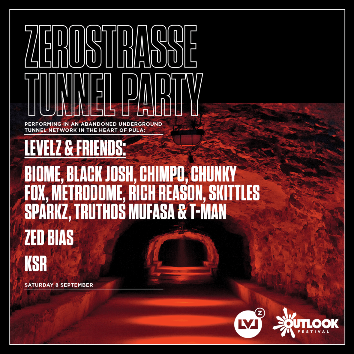 I Outlook se u sprema u svom 11. izdanju zaposjesti i pulsko podzemlje. U tome će festivalu pomoći šaroliki glazbeni kolektiv Levelz iz Manchestera koji su poznati po vrhunskoj atmosferi na svojim događanjima i suradnjom s nizom kvalitetnih i poznatih DJ-ja i MC-ja na bass glazbenoj sceni. U Zerostrasse tako stižu Biome, Black Josh, Chimpo, Chunky, MC Fox, Rich Reason, Skittles, Metrodome, Sparkz, Truthos Mufasa i T-Man. Uz njih ovaj vrući line up zaokružit će Zed Bias i KSR. Outlook Zerostrasse party će se održati u subotu, 8. rujna, ulaznice će biti dostupne za dva tjedna, a moći će ih kupiti samo vlasnici Outlook festivalske ulaznice uz prethodnu prijavu na ovom linku. Outlook festivalske ulaznice se mogu naći na ovom linku.