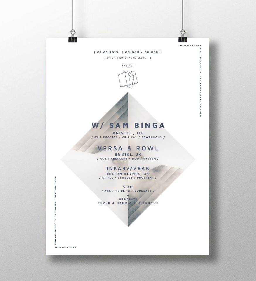 Dragi ljubitelji kvalitetnog klupskog zvuka, sa zadovoljstvom vam predstavljamo KABINET, novoosnovanu platformu i klupsku večer koja u Zagreb dovodi čak četiri etablirana imena UK bass scene. Direktno s ulica Bristola i klubova Londona dolaze Sam Binga, Versa, Rowl i Inkarv kako bi i u Zagreb donijeli dašak britanske klupske kulture. Ova će četvorka, osnažena VRH-om i residentima KABINET-a drmati zidove Sirupa na praznik rada. Bez puno filozofiranja, bez kalkulacija i uz ogromne doze pozitivne energije pozivamo vas da nam se pridružite i pružite podršku inicijativi koja za cilj ima podići ljestvicu i dodatno istaknuti Zagreb na svjetskoj clubbing mapi.