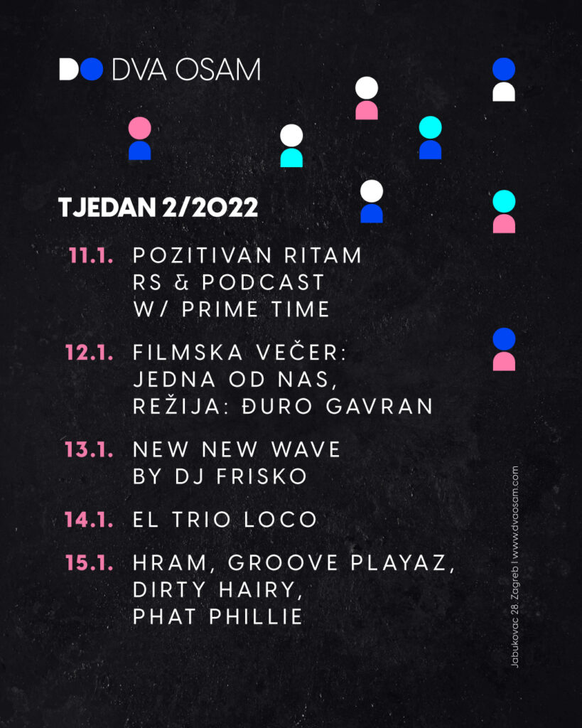 Nove restrikcije dodatno ograničavaju kapacitet posjetitelja u DVA OSAM, pa umjesto do sada dozvoljenih 250, u klubu smije boraviti 100 posjetitelja. Stoga apeliramo na to da svoje ulaznice osigurate u pretprodaji.