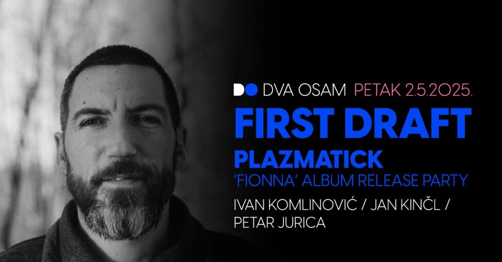 U petak, 2. 5., u klubu DVA OSAM očekuje nas premijerno izdanje nove klupske večeri First Draft, a bit će posvećeno promociji albuma “Fionna“, novog studijskog uratka zaprešićkog producenta Plazmaticka, objavljenog za PDV Records. Ovom prilikom okupit će se čak tri autora čiji albumi nose etiketu ove ugledne domaće izdavačke kuće.