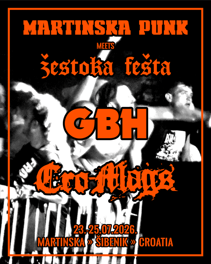 Britanski punkeri GBH i američke hardcore legende Cro-Mags predvode ovogodišnje izdanje festivala Martinska Punk meets Žestoka fešta, koji se održava 23. – 25. srpnja na Martinskoj u Šibeniku. Trodnevno glazbeno događanje posvećeno punk, metal i hardcore zvuku i ove godine na prostor Martinske dovodi neke od najžešćih svjetskih, europskih i lokalnih imena. Ove godine četvrtak i petak (23. i 24. 7.) posvećeni su punku, dok je subota (25. 7.) više obojena metal i hardcore zvukovima.