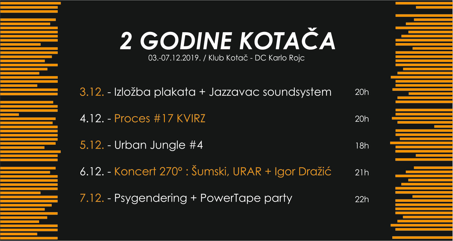 U protekle dvije godine Klub Kotač, koji se nalazi se u prizemlju Društvenog Centra Rojc u Puli, nametnuo se kao jedinstveno mjesto za razne aktivnosti i programe. U Kotaču je tako publika do sada mogla uživati u koncertima autorskih bendova raznih žanrova, večerima elektroničke glazbe, jazza, duba, reggaea, metala, lounge večerima. Kotač je i jedistven...