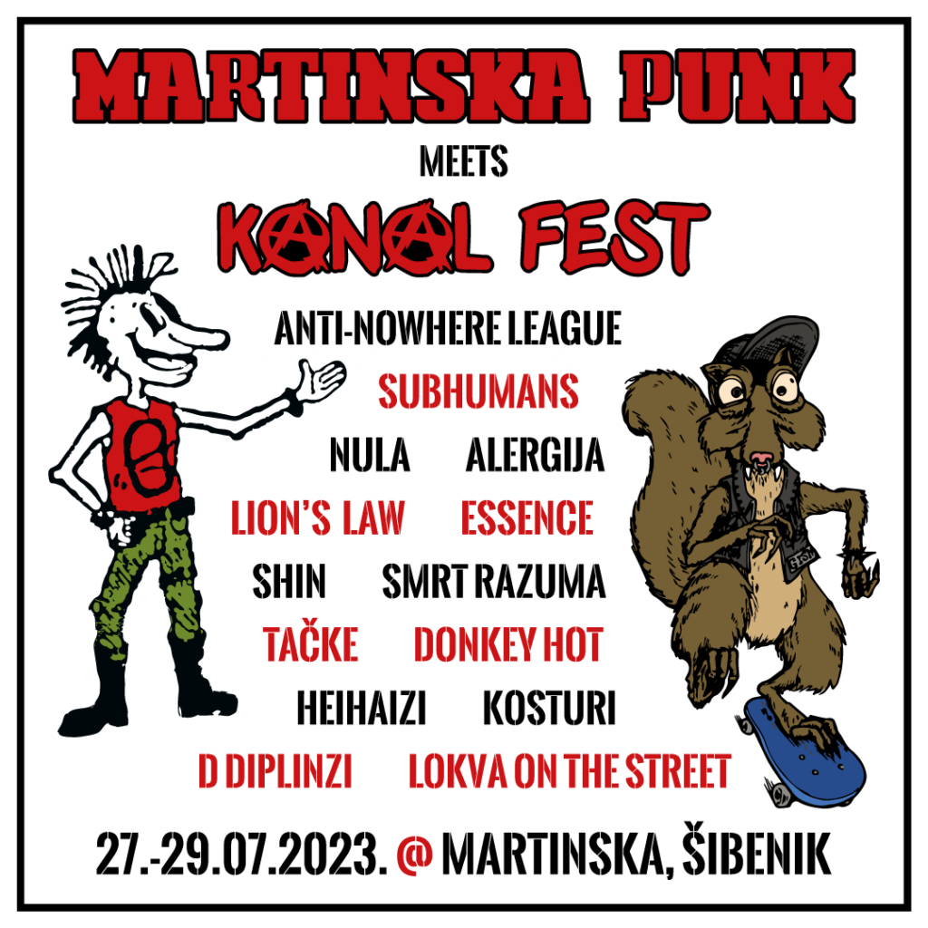 We proudly present all the bands that will play at the biggest punk fiesta this summer, organized by united festivals Martinska Punk meets Kanal fest. This year we are going to have maybe the biggest punk festival in the history of Dalmatia and beyond, three days packed with well known bands that will perform in this unique location, Martinska in Šibenik from July 27th to 29th, 2023. By joining forces, Martinska Punk and Kanal fest are bringing a powerful lineup that mixes international and regional bands. Martinska is a unique festival location, the only one inside the UNESCO buffer zone. This location is a protected nature park, and as such, Martinska is ideal for a blend of music and vacation.