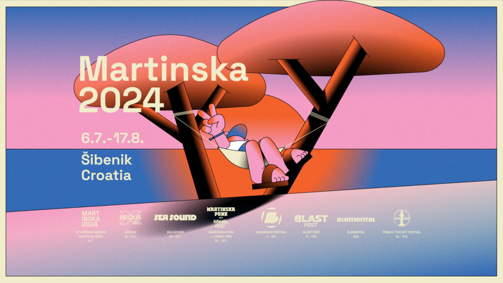This summer, Martinska opens its doors on Saturday, July 6th until Saturday, August 17th, offering eight major events. Martinska 2024 features six festivals (Regius Festival, Sea Sound Festival, Martinska Punk meets Kanal Fest, Membrain Festival, Blast Fest, Preach The Rič Festival) and two standalone events: Season Opening U/offu with Swiss DJ NVST (July 6th) and a grand solo concert by the group Elemental (August 14th).
