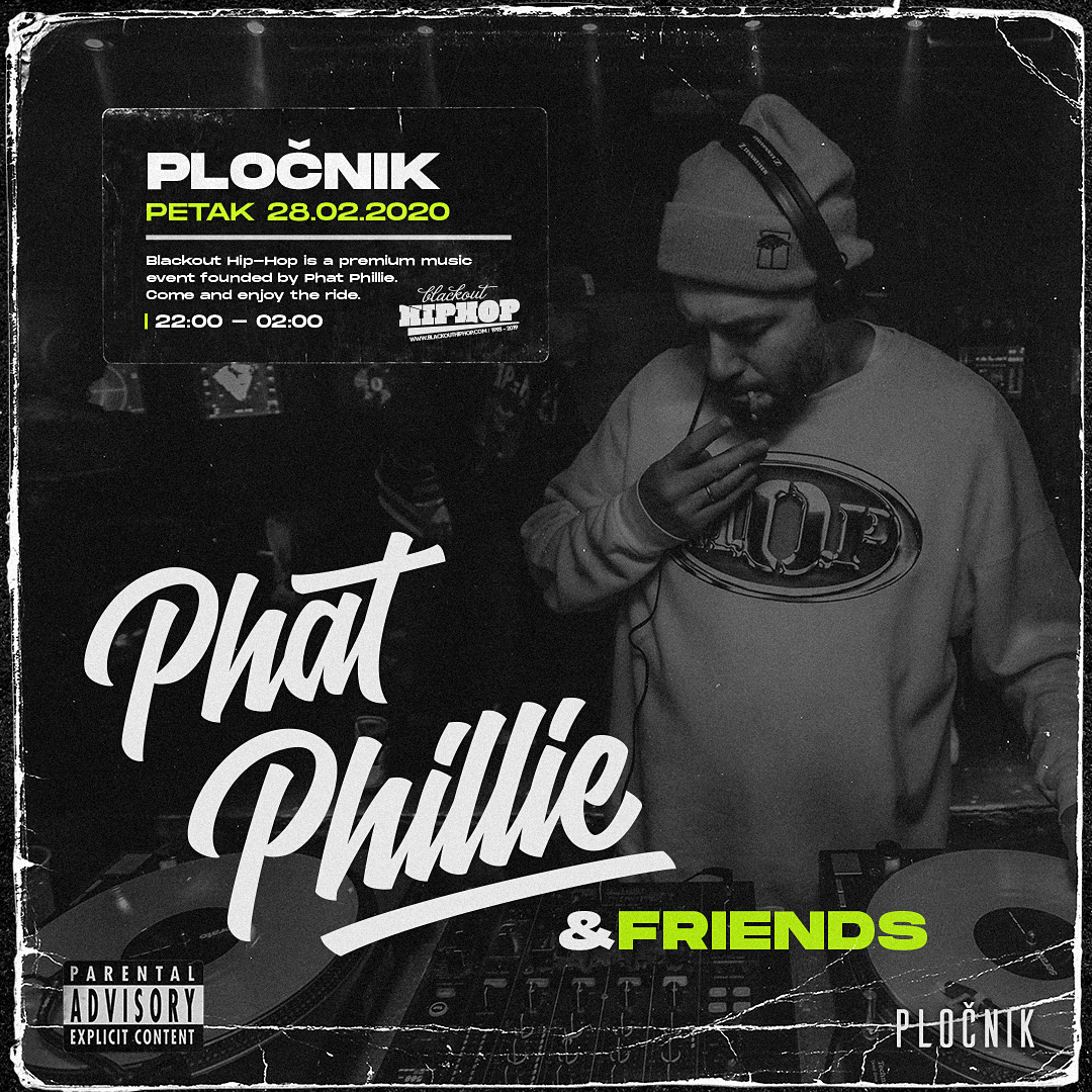 Blackout večeri se polako pretvaraju u mjesečnu rezidenciju u Pločniku. U petak 28.2. Phat Phillie i Blackout ekipa se vraćaju u basement sa jos jednom dozom nerafiniranog i tvrdog underground i classic Hip-Hopa.