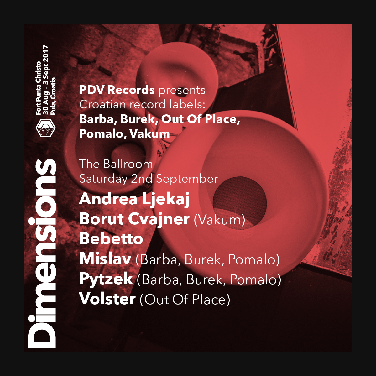 U režiji domaće etikete PDV 2. rujna na The Ballroom pozornici predstavit će se hrvatske izdavačke kuće: Barba, Burek, Out Of Place, Pomalo i Vakum nošeni njihovim najboljim igračima kao što su Andrea Ljekaj, Borut Cvajner, Bebetto, Mislav, Pytzek i Volster. Uzlet regionalne elektroničke scene pokazat će zagrebački kolektivi ekstrakt i CFSN, srpski predstavnici Avoid, Mikadroid i Nikola Vemić te Roli i Marta iz Slovenije.