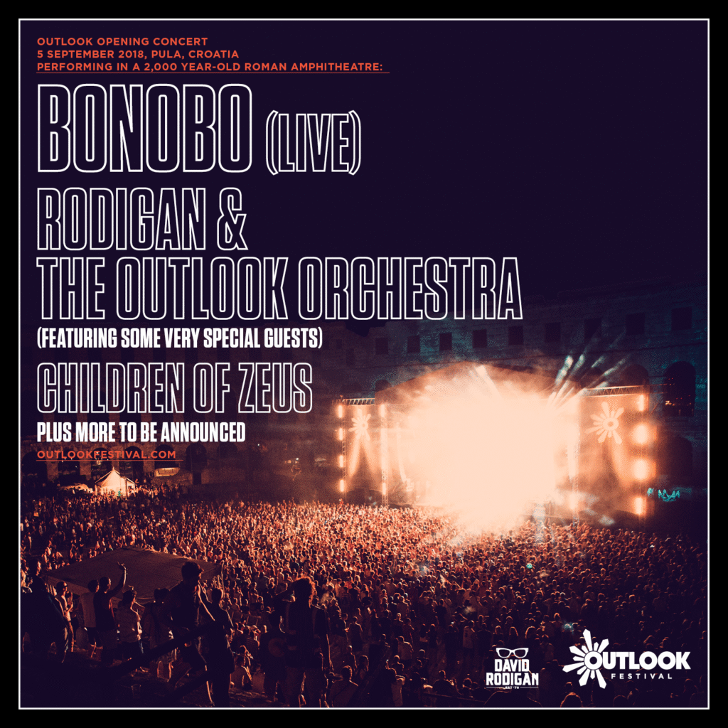 U srijedu, 5. rujna 2018., pulski amfiteatar bit će domaćin Bonobu – maestru ambijentalne glazbe koji će uživo izvesti njegov posljednji i cijenjeni album “Migration”, njegov najozbiljniji i najzahtjevniji album do sada. Serija rasprodanih koncerata na zadnjoj turneji podigla su Bonobov status u sami vrh elektroničke elite. Zamaglivanjem granica između trip-hopa, popa i plesne glazbe sa snažnim utjecajem simfonijske glazbe, album “Migration” još je jedan dokaz Bonobovog uspješnog balansiranja između žanrova koje usavršava zadnjih 15 godina. Bonobo je u estetici svoje glazbe vođen emocionalno nabijenim kinematografskim trenucima, svoje blažene ritmove spaja sa zasićenim žičanim instrumentima i bubnjevima pod jazz utjecajem. Bonobov univerzalni glazbeni jezik i atmosfera koju stvara bit će savršena glazbena podloga za početak još jednog Outlook festivala.