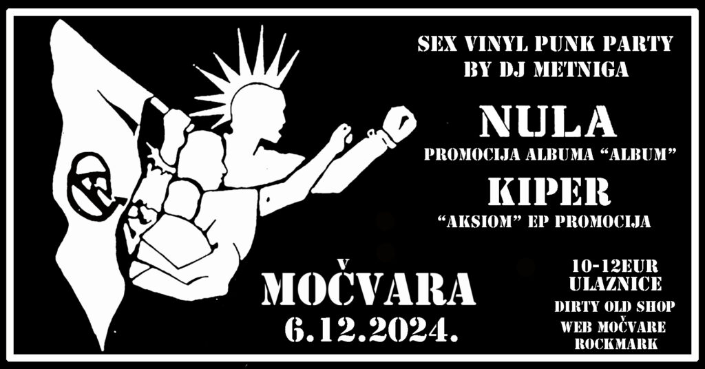 Vidimo se u Močvari u petak, 6. 12., od 20:00, ulaznice potražite na linku –> https://mochvara.hr/event-detail/6710db30c43f28472d4c3a7b, a ako nekom smeta što nitko ne vrti punk ploče po zagrebačkim klubovima, ostat će na nakon koncerta u klubu jer DJ METNIGA radi SEX vinyl punk afterparty.