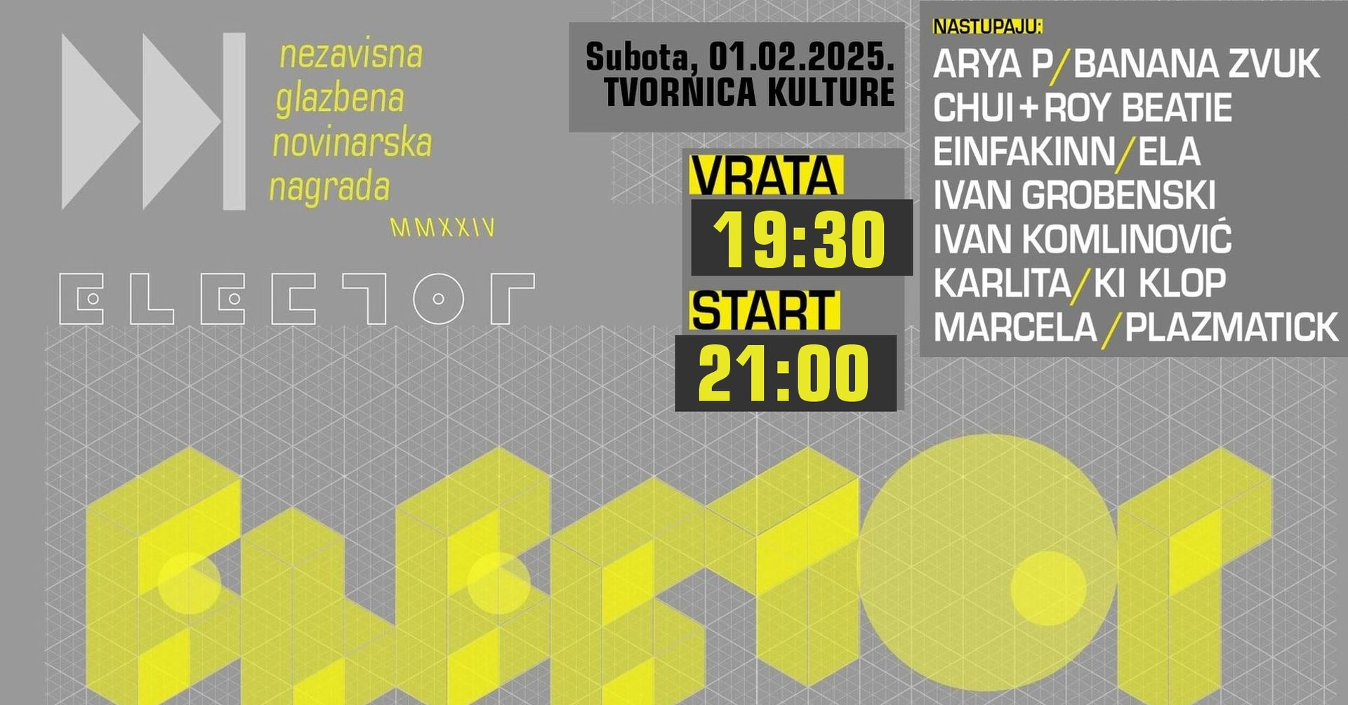 Na jučer, u Tvornici Kulture, održanoj dodjeli nezavisne novinarske nagrade za elektroničku glazbu i Plazmatick i Ivan Komlinović su osvojili nagradu Elector u nominiranim kategorijama.