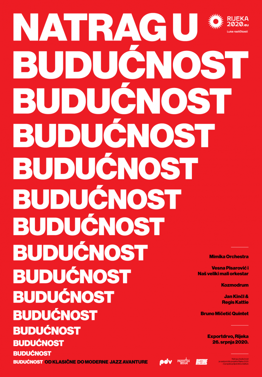 Koncert “Natrag u budućnost – Od klasične do moderne jazz avanture” također za cilj ima i predstavljanje umjetnika odnosno glazbenika koji djeluju u sklopu PDV (Prekomjerna Doza Vinila) glazbene izdavačke kuće. Dodatno, tu je i predstavljanje relevantnog lokalnog glazbenika Brune Mičetića koji će sa svojim Quintetom izvesti hvaljeni album “Out of the shadow”. Nadalje, svim glazbenicima odnosno glazbenim skupinama koje će nastupati zajedničko je što okupljaju članove iz Hrvatske i raznih europskih zemalja, te bez obzira na takvu dislociranost godinama zajednički uspješno stvaraju i surađuju. Ovakav koncept koji negira granice kao prepreku predstavlja rezultat njihovog rada koji se reflektira kroz različite vrste migracija tijekom njihova života i stvaralaštva (školovanje i život u inozemstvu, česta putovanja na brojna gostovanja, kontinuirano vraćanje i djelovanje u Hrvatskoj sa željom i ciljem razvoja te obogaćivanja glazbenog stvaralaštva, itd.). Dodamo li i novu, kulturnu lokaciju u Rijeci, Exportdrvo, te miris i blizinu mora ne preostaje drugo nego zaputiti se u nedjelju, 26. srpnja na glazbenu poslasticu. |