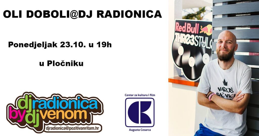 DJ Radionica u suradnji sa projektom kvARTopis Centra za kulturu i film A.Cesarca organizira večer gostujućih predavača, a prvi u nizu je zagrebačka legenda, DJ Oli Doboli. Oli će govoriti o iskustvu, glazbi, nastupima, suradnjama, tehnologiji i svemu što je dio njegove bogate karijere. Naravno bit će tu i demonstracija na gramofonima, dijeljenja korisnih savjeta i odgovora na pitanja.