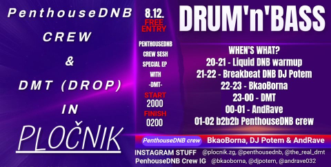 Ako ste fan Drum&Bass-a ili imate takvog frenda dođite si zadovoljiti dušu u Pločnik uz PenthouseDnB crew + DMT!